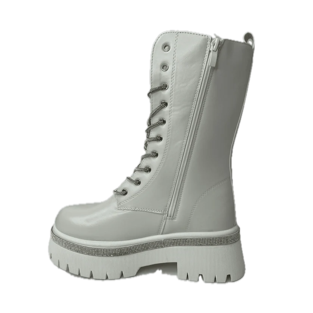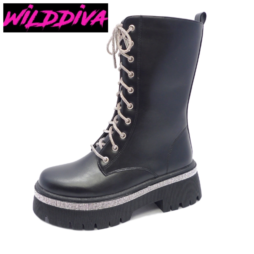 Material: Man made PU leatherette 2 3/8" heel height 1 3/4" outsole platform 8 3/4" shaft height 12 1/8" open circumference Inner side zipper Women's lug sole boots