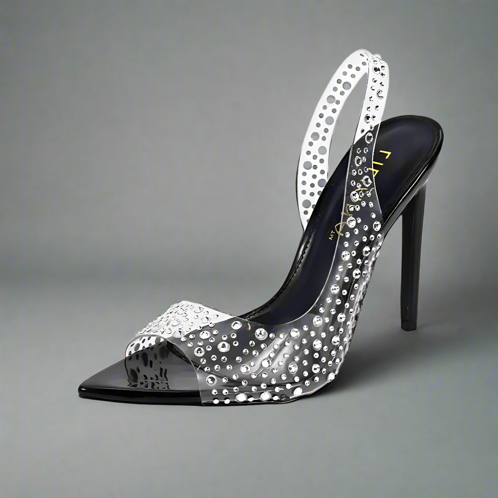 Heel Height Approx. 4.5" Pointed Toe Pump with clear upper True to Size